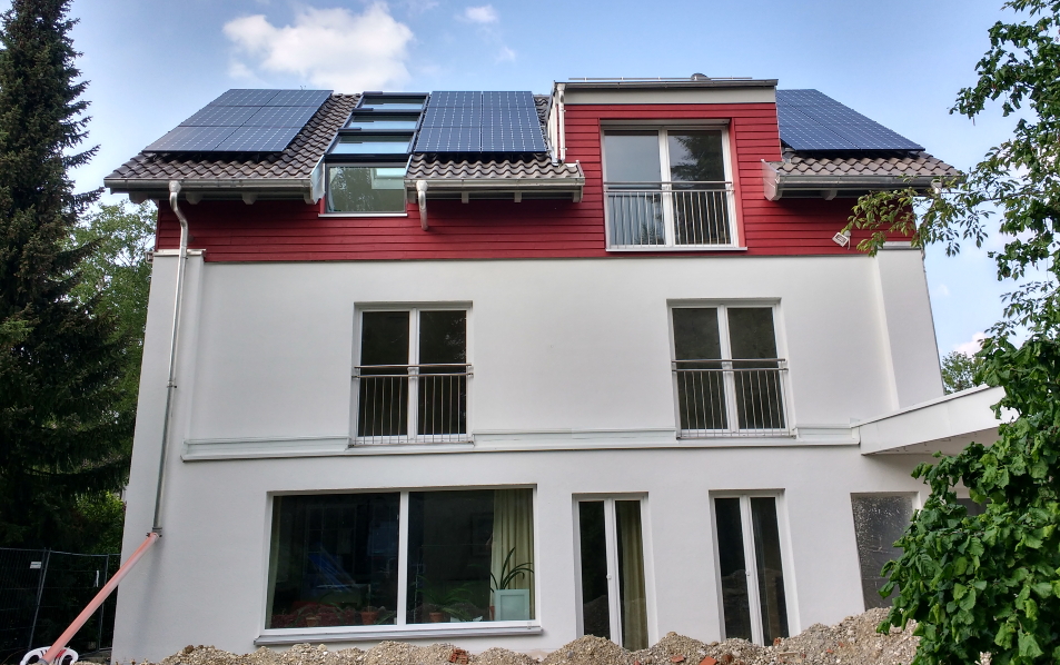 Beschreibung: Ziegeldach mit Ost-West-Ausrichtung, Einspeisemanagement mit SMA Homemanager, BYD HVM 16.6.